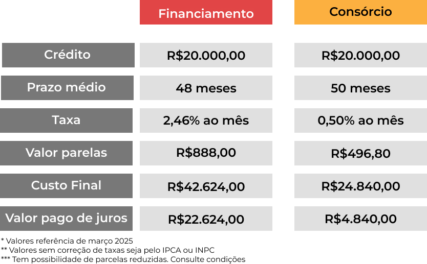 Veja a enorme diferença de valores entre consórcio de imóveis X financiamento bancário para adquirir seu imóvel na cidade, no litoral ou rural:
